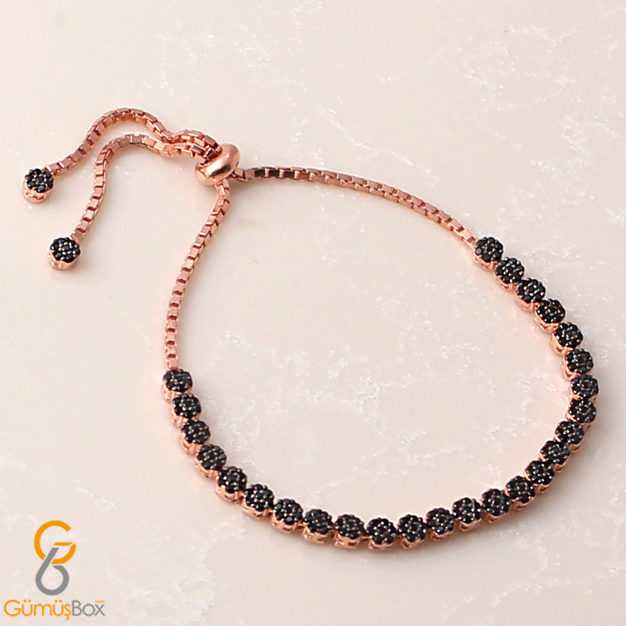 Siyah Zirkon Taşlı Rose Asansör Bileklik
